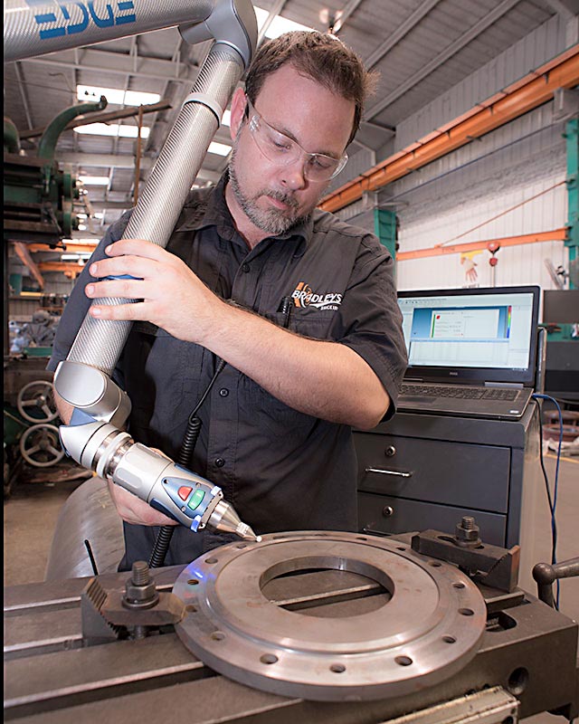Bradleys’ Faro CMM provides precise measurements of your machine’s parts and tolerances, prior to and after repair. Bradleys’ shop is the only ISO 9001:2015 certified repair facility north of the Harbor Bridge, just minutes away in Gregory, TX.