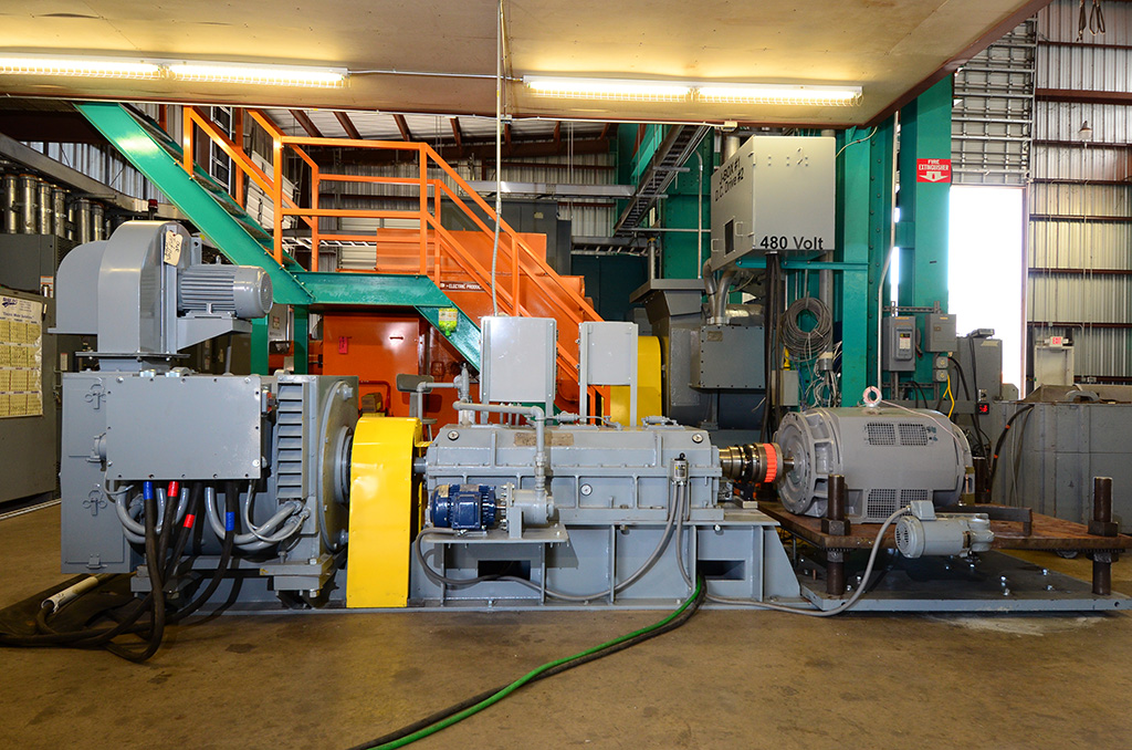Our dynamometer has a torque measurement device capable of measuring 52,083 lbf ft at 3600 rpm with a.1% accuracy on a motor load test.The dynamometer set up has several available combinations of speed and horsepower. We can perform a motor load test up to 7000 horsepower AC or 4500 AMP, 750V for DC motors. Data collection includes 12 temperatures, power, HP, efficiency, power factor, torque, speed, currents, and voltages.