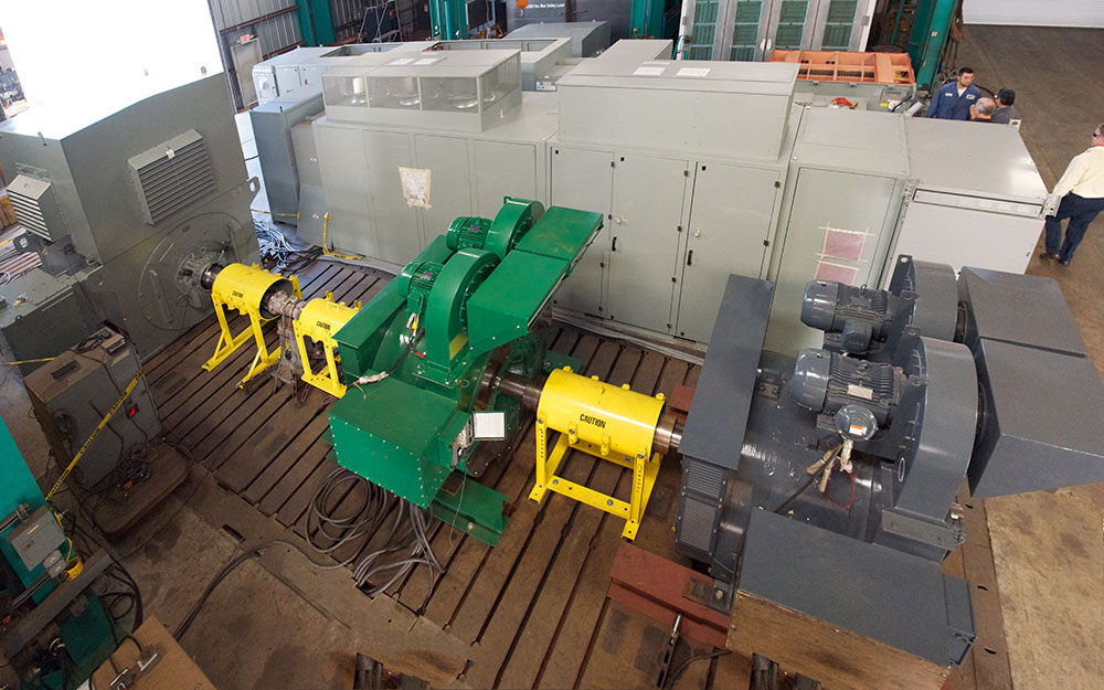 Your VFD (ASD) systems can be tested through numerous setup configurations. Input voltages up to 13KV are available. System power can be monitored to determine entire system efficiencies at multiple load points. Limited overspeed testing is possibl